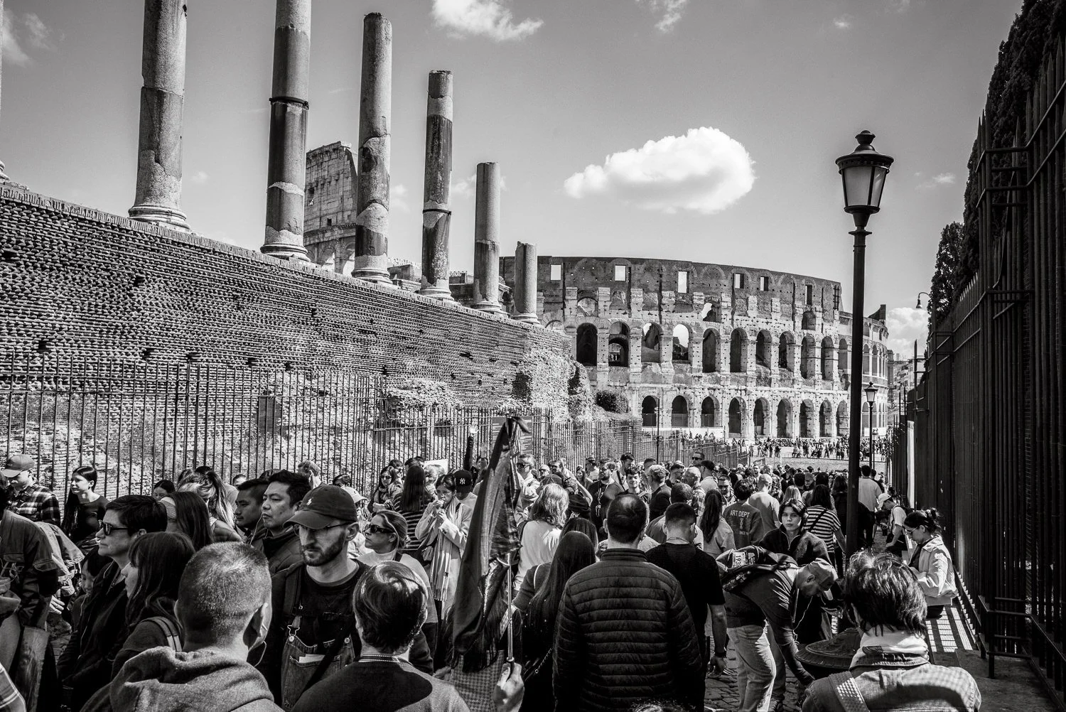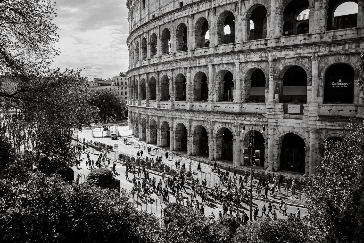 Quelques images quand même : le Colisée, en noir et blanc, pour garder une trace de cette démesure de pierre et d'histoire. Parce qu'on a beau le voir en photo, en vidéo, sur Internet — rien ne prépare vraiment à se retrouver devant. L'échelle est absurde. La masse, écrasante. On comprend mieux, debout au pied des gradins, pourquoi Astérix concluait invariablement : "Ils sont fous, ces Romains." Il n'avait pas tout à fait tort !